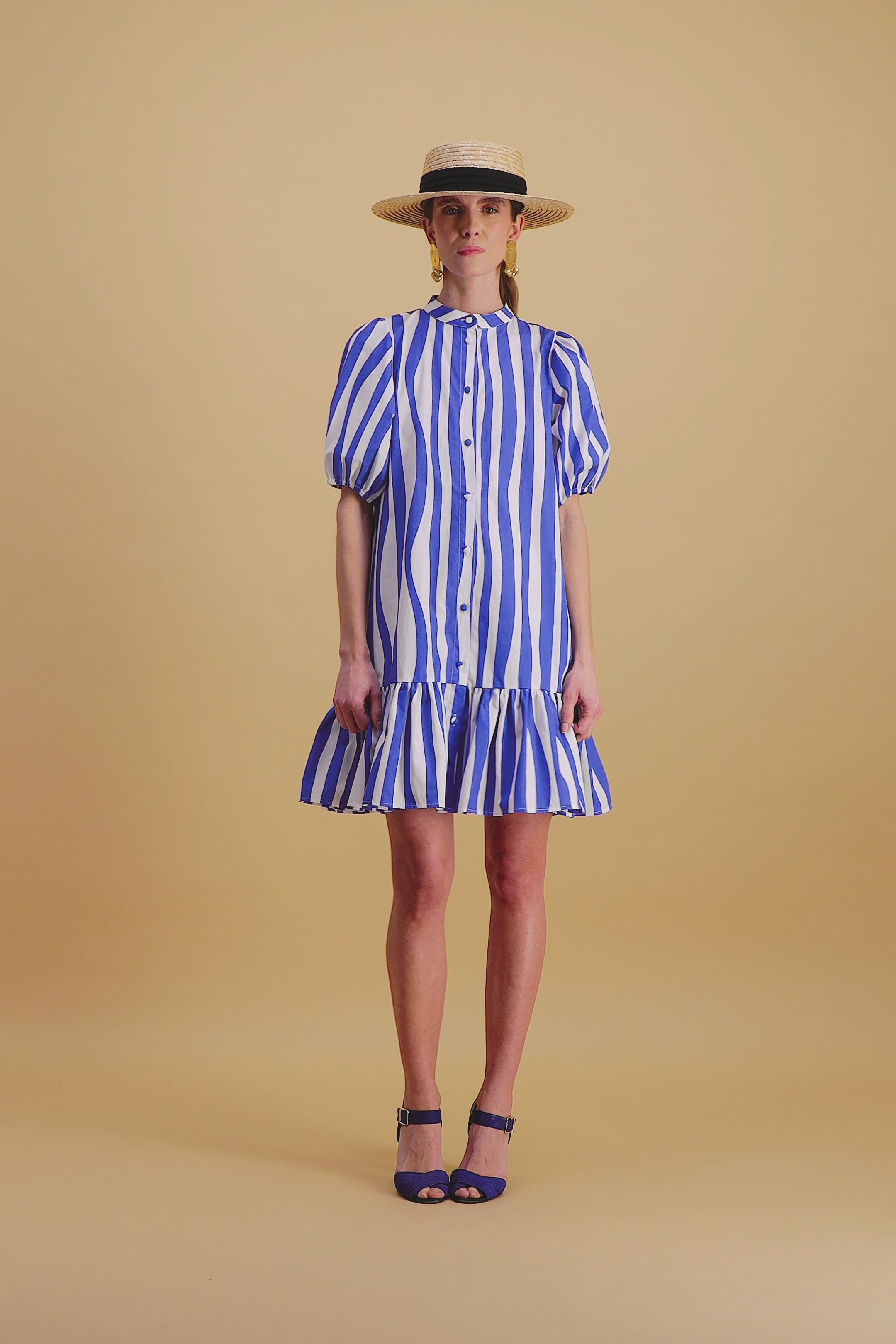 Ajoutez une touche de fraîcheur à votre garde-robe estivale avec cette charmante robe courte à rayures bleu et blanc. Cette robe est idéale pour les journées ensoleillées, vous offrant confort et style en toute simplicité.